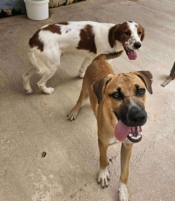 Fulvio wurde mit dem Bretonen Rüden Roy vergesellschaftet und bei bilden nun eine Zwinger-WG. Das Leben im Canile ist schwer für die Hunde, die die miste Zeit am Tag sich selbst überlassen sind und nur ab und an ein wenig auf dem Gelände frei laufen können.
