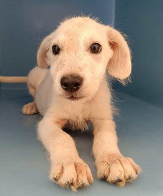 Polare als verwaistes Einzelkind kam auch er im städtischen Canile auf Sizilien an. Er wurde mit Romeo und Cometa im Krankenzimmer des Canile vergesellschaftet.